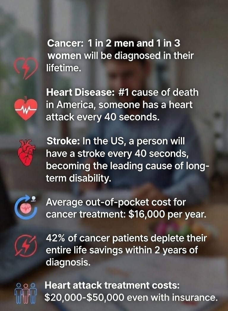Cancer, heart attack, and stroke are among the most common and financially devastating health crises families face. This specialized insurance provides cash benefits when you need it most.
